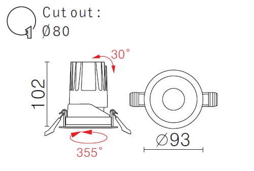 c/w: 8.4W COB LED 3000K, 24° beam, 1500lm, CRI90