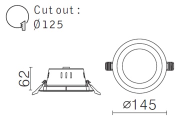 c/w: 8W COB LED 3000K or 4000K, 1300lm, CRI 90