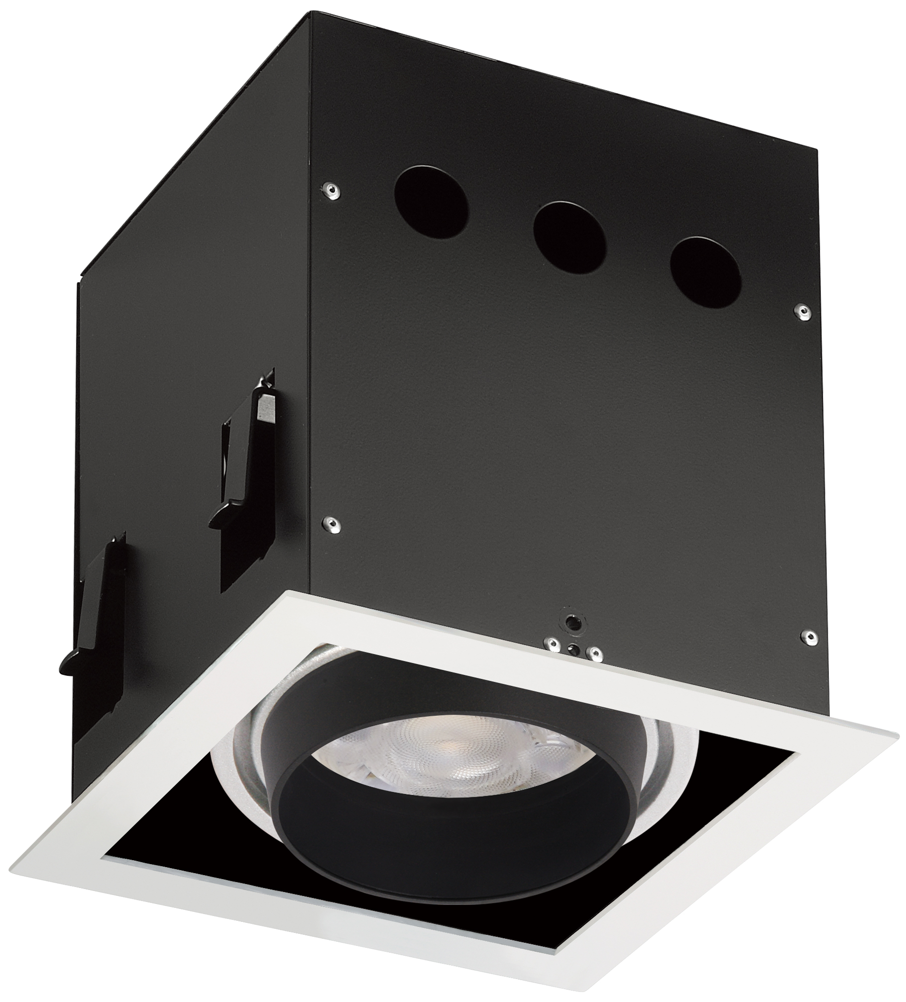Adjustable square ceiling recessed downlight in matt white finish with honeycomb anti-glare louvres